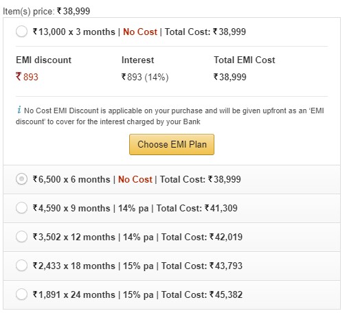 Note: The instant discount is applicable on Credit card EMI payments, Non-EMI payments, and Debit card EMI payments. However, the discount shrinks with Debit Card Non-EMI payments.