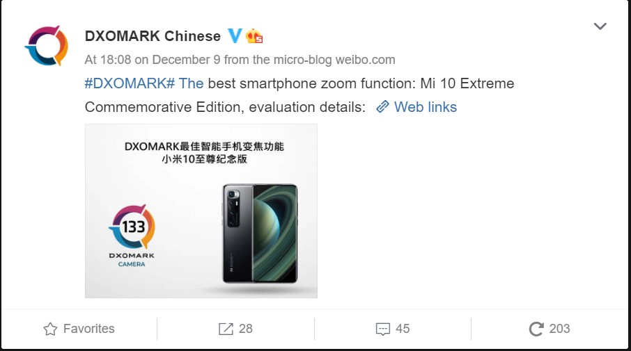 - Camera Zoom- Smartphone: Xiaomi Mi 10 Extreme Commemorative Edition.