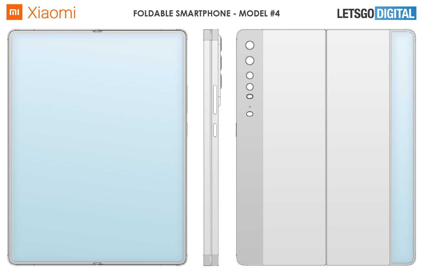 Apart from three clamshell foldable phone designs, Xiaomi has also patented four large screen foldable smartphones that unfold into a tablet. All of them look like Galaxy Z Fold2 with some minor differences between them.