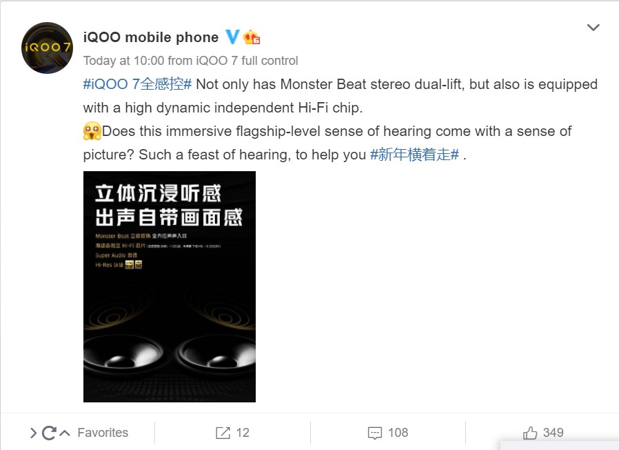 The company, in a poster, also says that the flagship will not only provide 3-Dimensional surround vibrations but also have a Dual Speakers with Hi-Res Certification. In fact, it will have a HiFi DAC chip that has a dynamic range (DNR=120dB) and THD<0.03%.