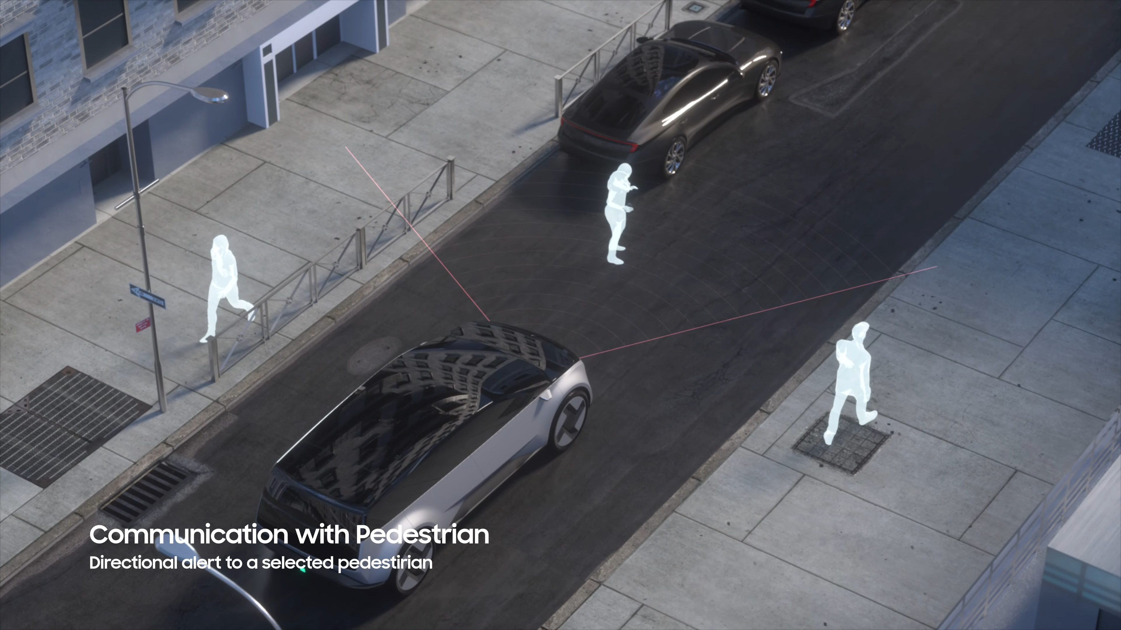 When pedestrians are detected in front of the car, they are alerted using speakers and the outside screen. The rear-view mirror’s functionality is carried out by a floating screen on the top of the windshield. The floating screen also displays various driving and weather-related information as well as notifications such as local news and sports scores.