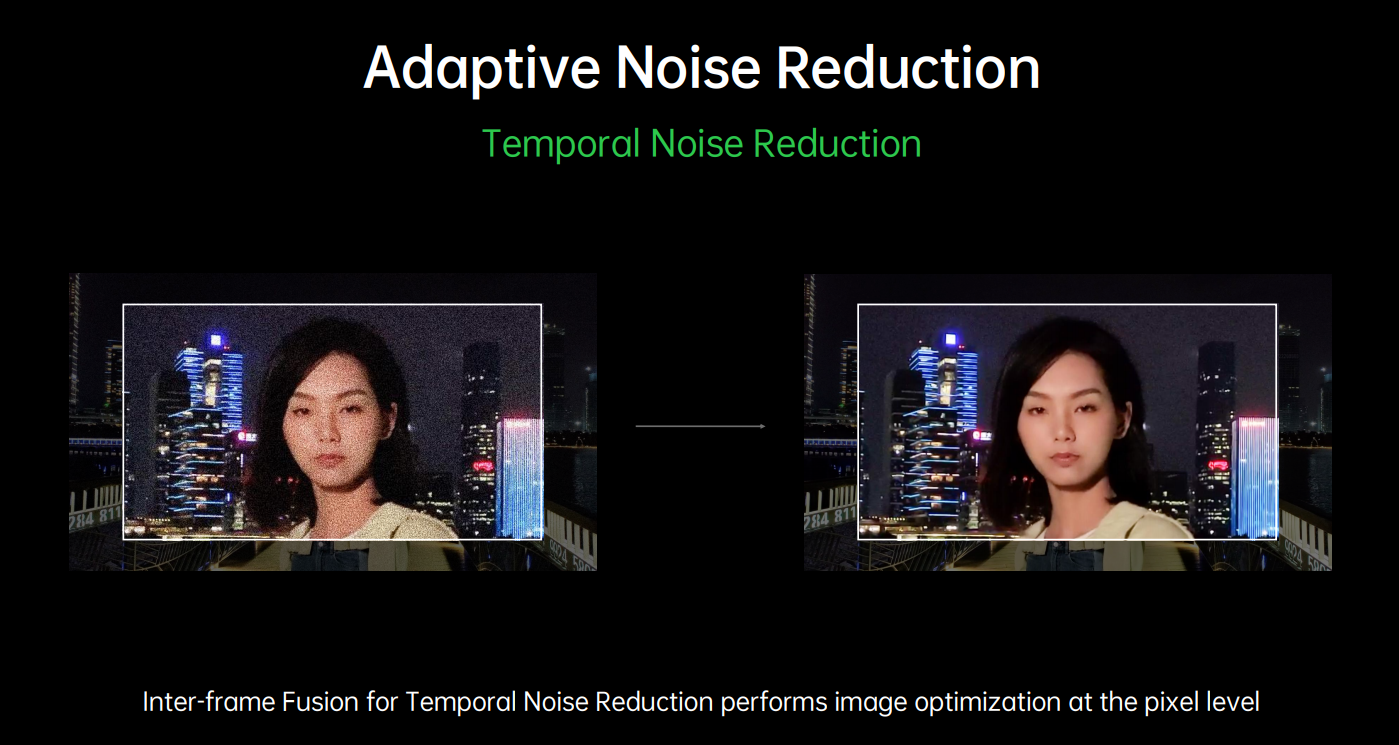 - AI Adaptive Noise Reduction: This process adds inter-frame fusion for temporal noise reduction (between two frames) and intra-frame fusion (inside the frame) for spatial noise reduction. OPPO claims that this process removes an image’s noise without removing essential details, unlike other regular de-noising algorithms.