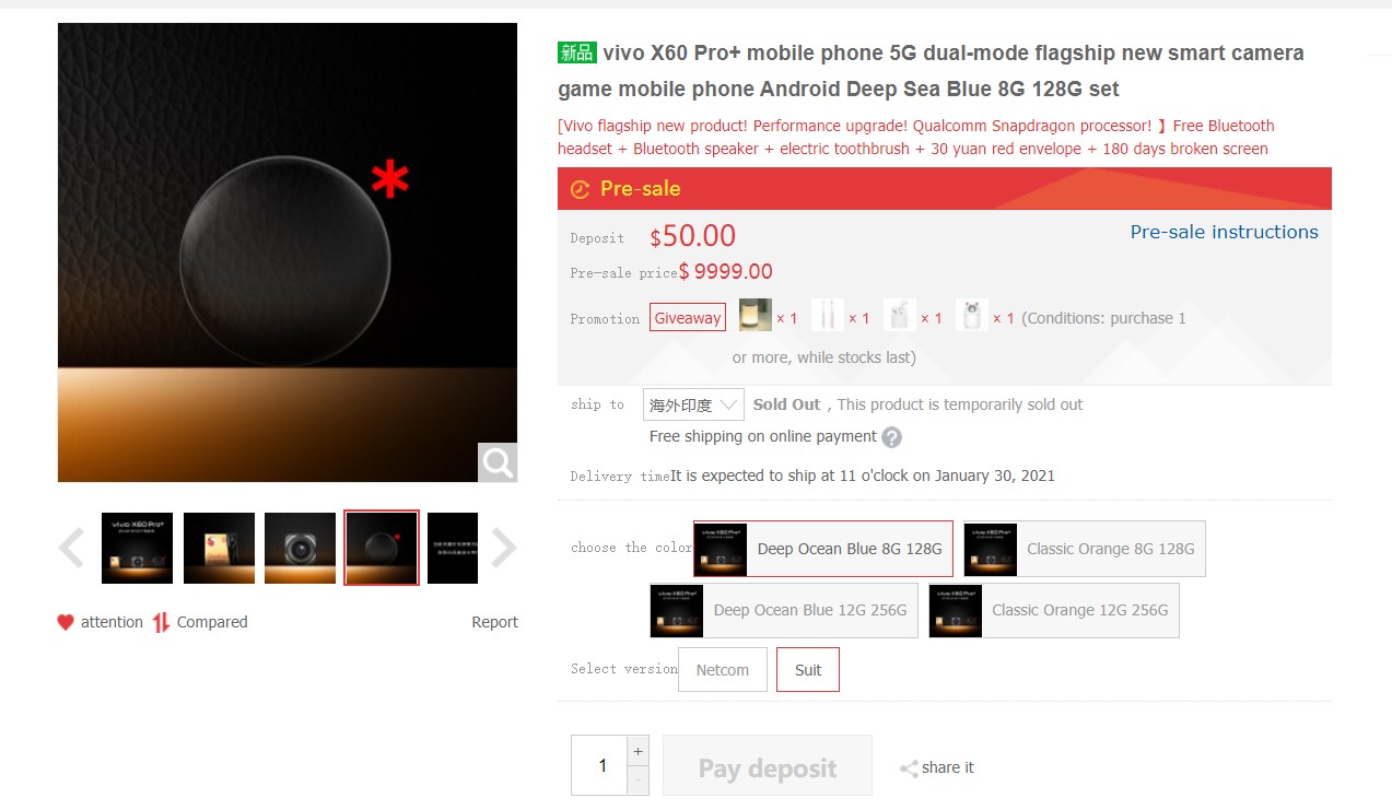 And if you look down the listing, we have information about the color and memory variants. Apparently, the X60 Pro+ will have two color options- Deep Ocean Blue and Classic Orange. If the listing is true, the memory variant of the device is either 8GB RAM, 128GB storage, or 12GB RAM, 256GB storage. Do note that a disclaimer image at last says final information could vary after launch.