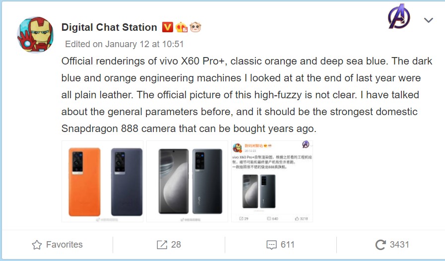 Either way, the names of the colors go in line with the earlier leak by Digital Chat Station a few days ago. He posted two images of the Vivo X60 Pro+ one in Blue and the other in Orange. Looking at the vague images and JD.com listing, it is possible that Vivo would launch X60 Pro+ in Leather editions.