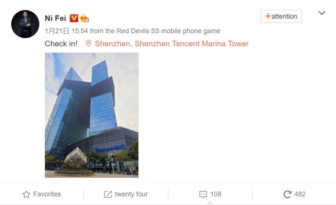 First and foremost, is the ‘Tencent Games’ tagline on it suggesting a Tencent Games Edition of the Red Magic 6. To affirm this, Nubia GM Ni Fei has posted a picture of the Tencent building at Shenzhen teasing the collab more. Next, is the horizontally stacked cameras. We aren’t sure if it’s a quad-camera layout as only three sensors are visible in the image.
