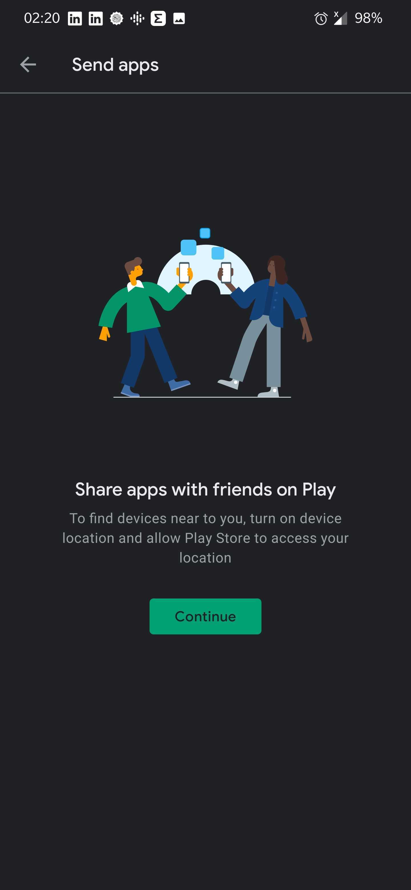To get the feature working, all you have to do is launch the Play Store app and go to My Apps. There should be a new tab called Share next to Library if the feature has already been made available to you. Select the tab and you are provided with the option to choose if you want to send or receive apps.