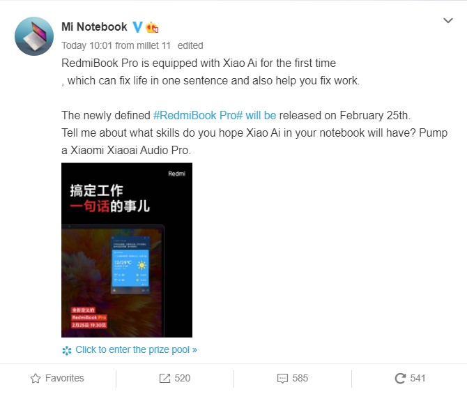 In a Weibo post, the company said that XiaoAI will debut on the RedmiBook Pro. In case you don’t know, the laptop will debut in China on February 25 i.e, Tomorrow. Anyway, this would be the first time the company’s Smart AI assistant is making its way to Windows machines.