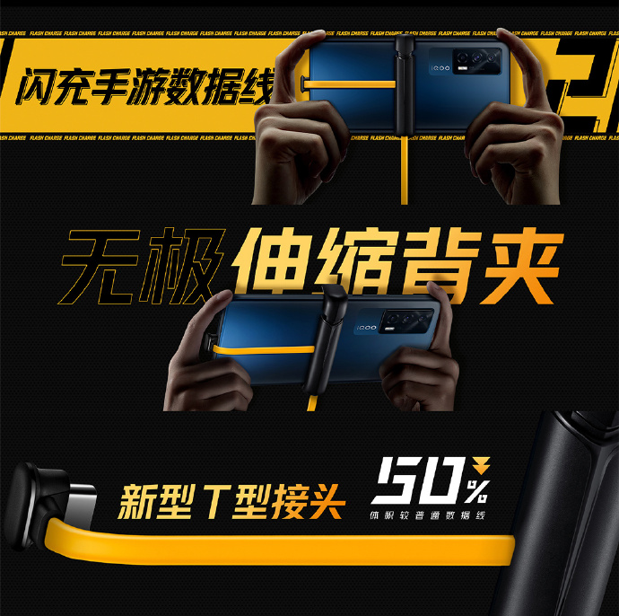 Finally, to aid the gamers while playing, iQOO also launched a flexible Flash Charge Data cable 2. It comes in a combination of Black and Yellow colors. iQOO says that the cable is held firmly by a telescopic back clip. This helps prevents the charger from slipping and also goes in line with the posture.