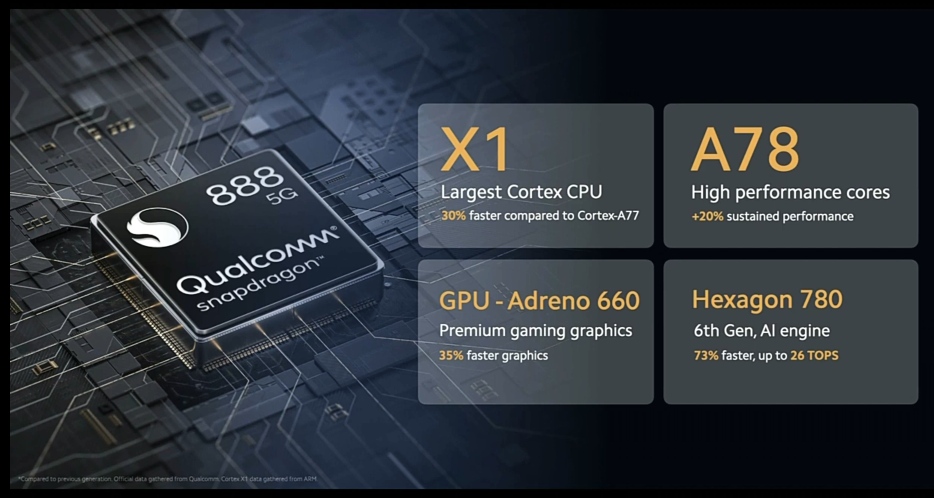 The Mi 11i is powered by a Snapdragon 888 mobile platform, the latest flagship processor from Qualcomm. The processor allows higher performance while consuming less energy and providing a super fast and reliable user experience. The phone also arrives with 8GB LPDDR5 storage and 128GB/256GB UFS 3.1 flash memory.