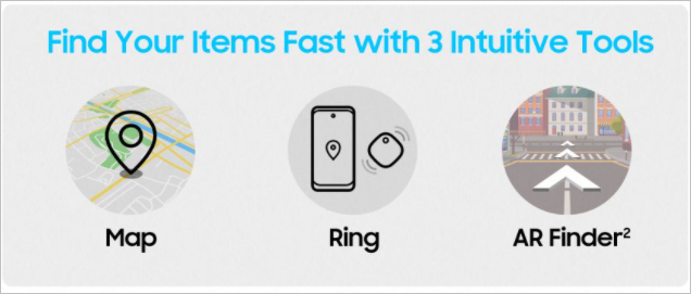 The Galaxy SmartTag+ uses both Bluetooth Low Energy (BLE) and ultra-wideband (UWB) technology to precisely map the tagged object’s location. It then deploys augmented reality (AR) technology to visually guide the user to the object’s location using the smartphone’s camera. The AR Finder on the smartphone gives you the distance from your tagged object and gives you directions until you are close to the object. A buzzer can be activated on the SmartTag+ to notify you when you are at a touching distance from the object.