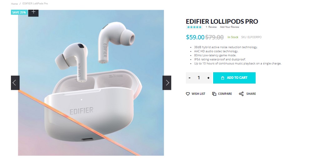 Edifier LolliPods Pro true wireless earbuds usually retail for the price of $89.99. But, users around the globe can get it for a discounted price. Edifier LolliPods Pro features an ergonomic design that makes it comfortable to wear.