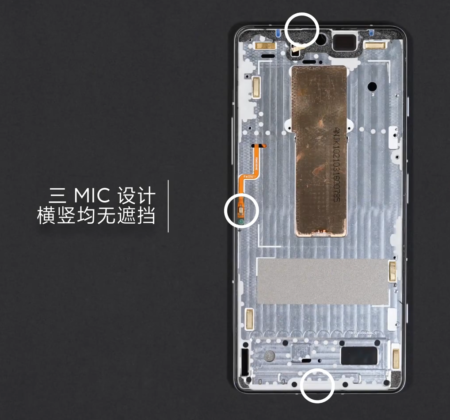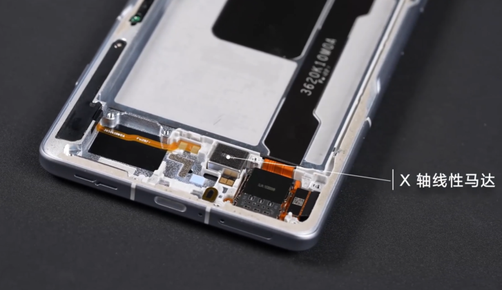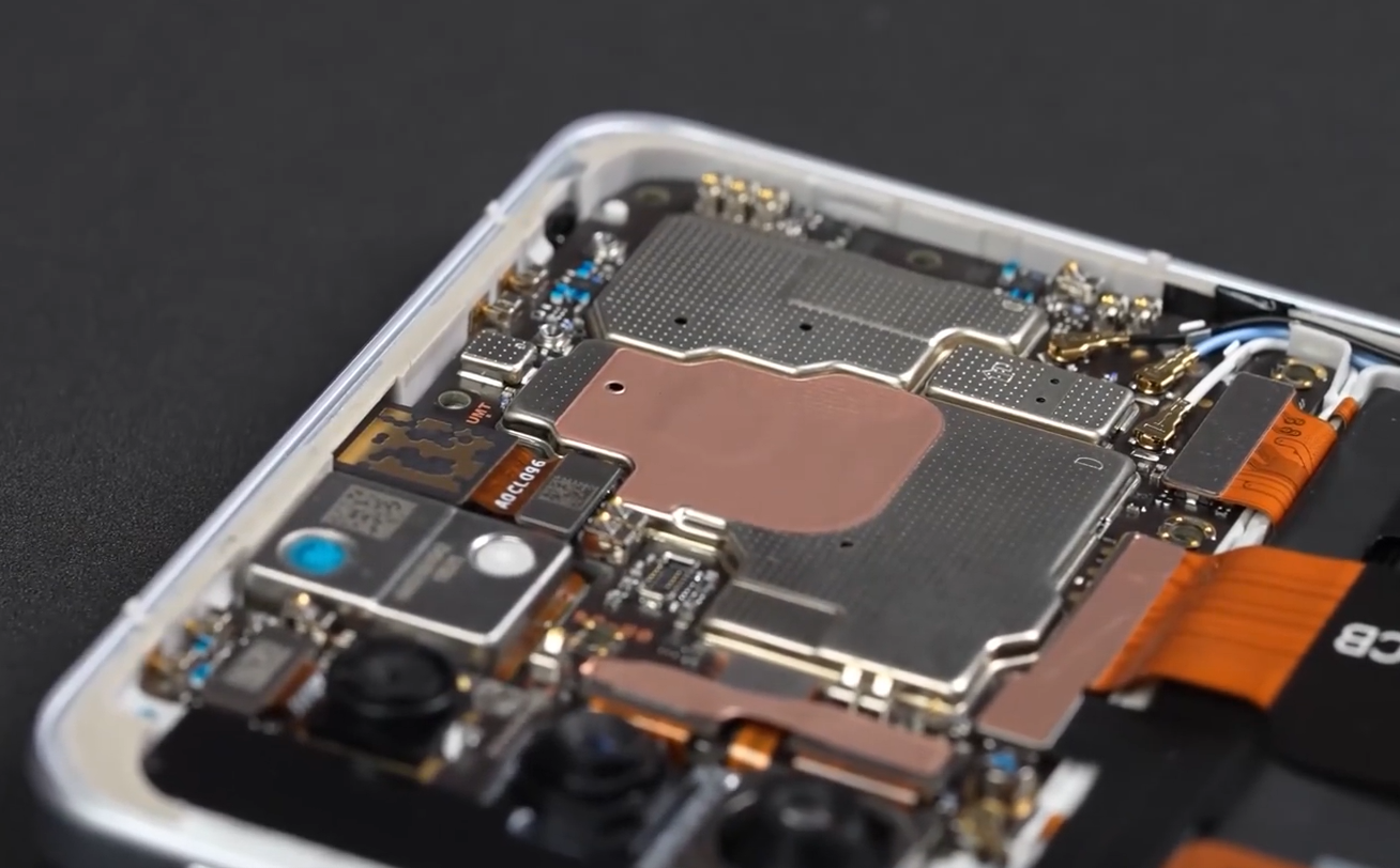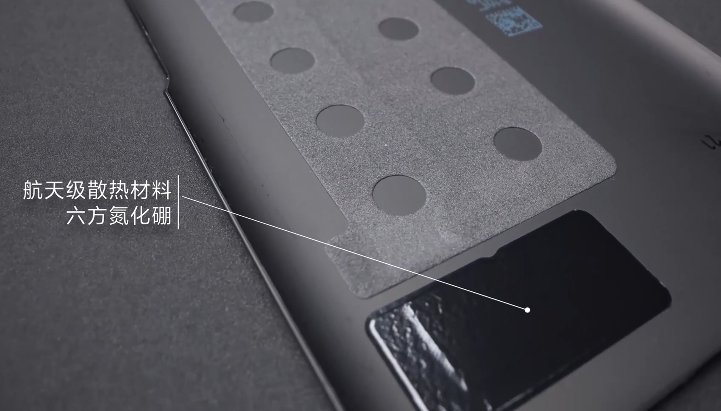 The middle part of the phone’s back panel facing the location of the processor is covered with a large-area VC soaking plate while the upper part is coated with silicone grease for heat conduction.