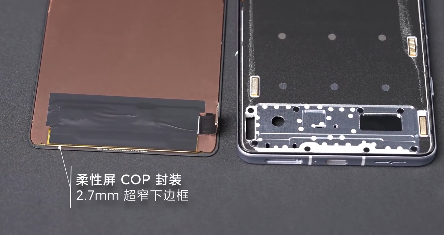 The phone has a shoulder button that is linked to a connecting rod. The button automatically pops up after the phone is switched to gaming mode. Furthermore, in order to achieve the ultra-narrow lower frame that is just 2.7mm thick, the OLED screen uses COP (Chip On Pi) packaging. COP screen packaging involves directly bending a part of the flexible screen to further reduce the frame, which can achieve a nearly borderless effect.