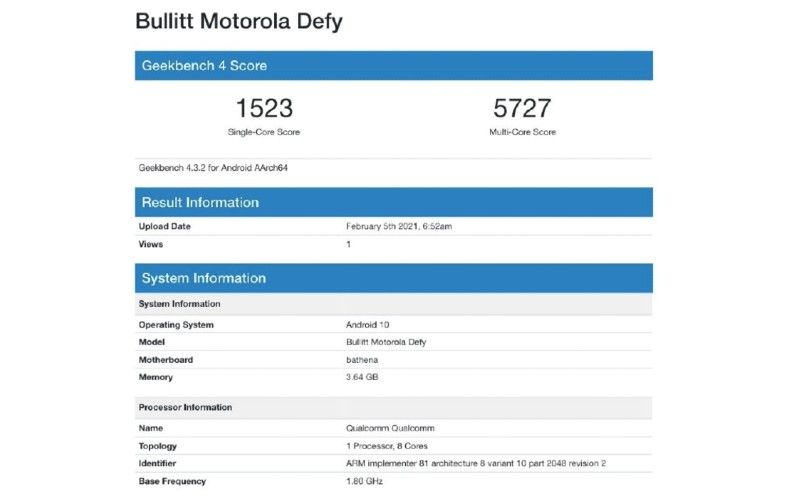 Earlier in February this year, a Motorola model appeared on both Google Play Console and GeekBench bearing the moniker Motorola Athena (Defy). The name suggests the unannounced smartphone would be a re-enactment of the classic Motorola Defy which was first launched in 2010. The Defy happened to be the first Android phone ever to have water and dustproof capabilities.