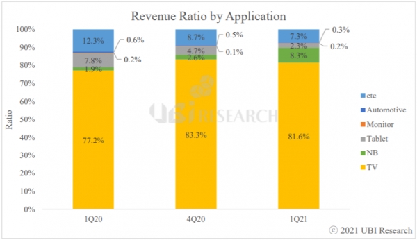 The notebook and TV OLED panels contributed significantly to the figure, as TV OLED panel shipments were about 1.6 million units in the three months ending March 31, 2021. The corresponding Notebook OLED panel shipment was about 1.1 million units. With these numbers, TVs accounted for about 82% of the total sales.