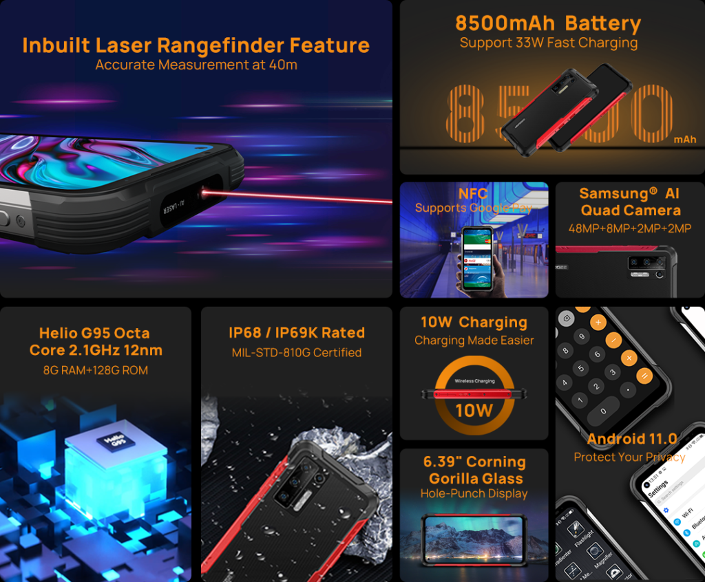 Its powerful hardware is well optimized with the intuitive GUI. Additionally, Doogee S97 Pro will come with a low power-intensive 8GB DDR4 RAM and 128GB UFS storage. The smartphone is MIL-STD-810G, IP68 and IP67 certified with dust, drop, and water resistance.