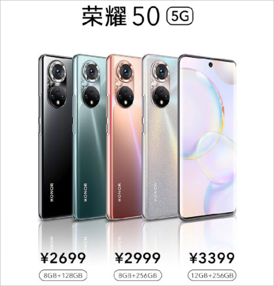 In terms of price, the Honor 50 8GB+128GB is priced at 2699 yuan (~$422), the 8GB+256GB is priced at 2999 yuan (~$469), and the 12GB+256GB is priced at 3399 yuan (~$531). On the other hand, the Honor 50 Pro 8GB+256GB is priced at 3699 yuan (~$578), 12GB+256GB is priced at 3999 yuan (~$625). The models are expected to go on sale on June 25.