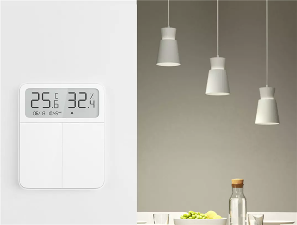 The switch has a built-in temperature and humidity sensor, which allows the user to see the temperature and humidity of the room. There is an LCD screen on the display which can be used to view the temperature and humidity of the room. The switch can be linked with the indoor air conditioner and humidifier.