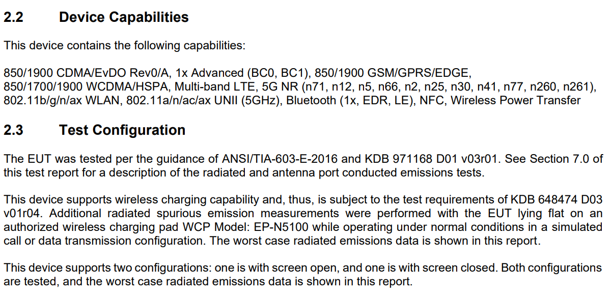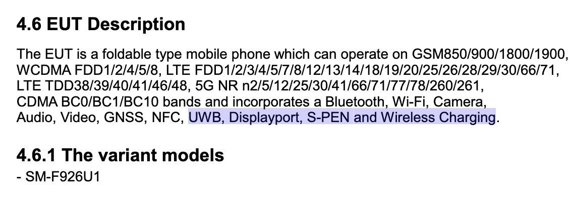 According to the FCC documents, fast charging support is also available for the Samsung Galaxy Z Fold3, with a wired charging capacity of 25W, while wireless charging could offer 9W. The 4,275 mAh battery of the device is composed of two cells of almost equal capacity). Ultra-Wide Band feature is also supported for the Galaxy Z Fold3, making it possible for it to serve as a connection hub for Samsung’s SmartTag+. Of course, the high-end Z Fold3 has support for 5G technology.