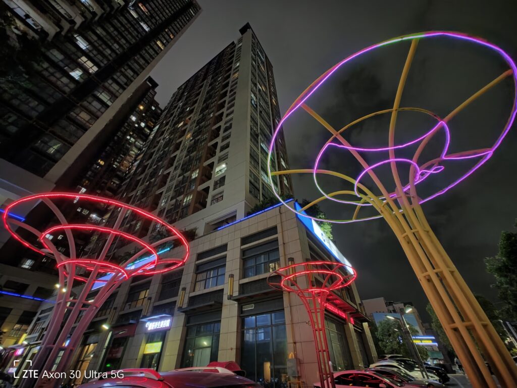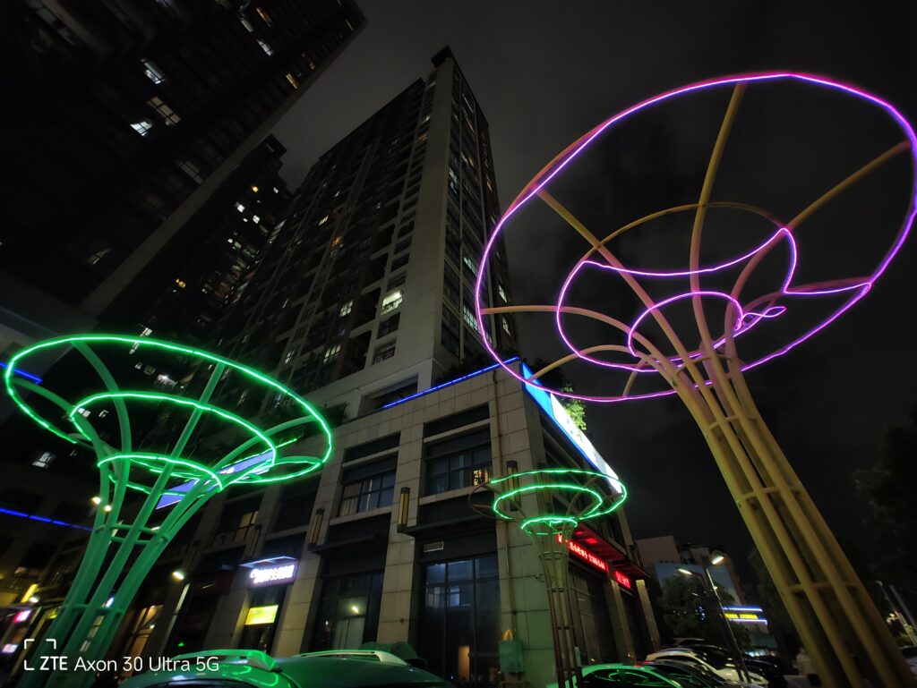 The main camera, even with the AI tuning, is not too gaudy, HDR is moderately strong, the details are plentiful, the white balance is stable, and the finished photo style is of the type that is stable, without mistakes. At night, AXON 30 Ultra’s auto mode is not integrated with any night mode algorithm, so you can see that the auto mode photos are faithfully restored to what the naked eye sees, and the dynamic range of the photos is relatively small. However, once the night mode is turned on, all aspects of the photos are improved tremendously. The noise is also less while retaining details, which already belong to the first tier level of flagship phones.