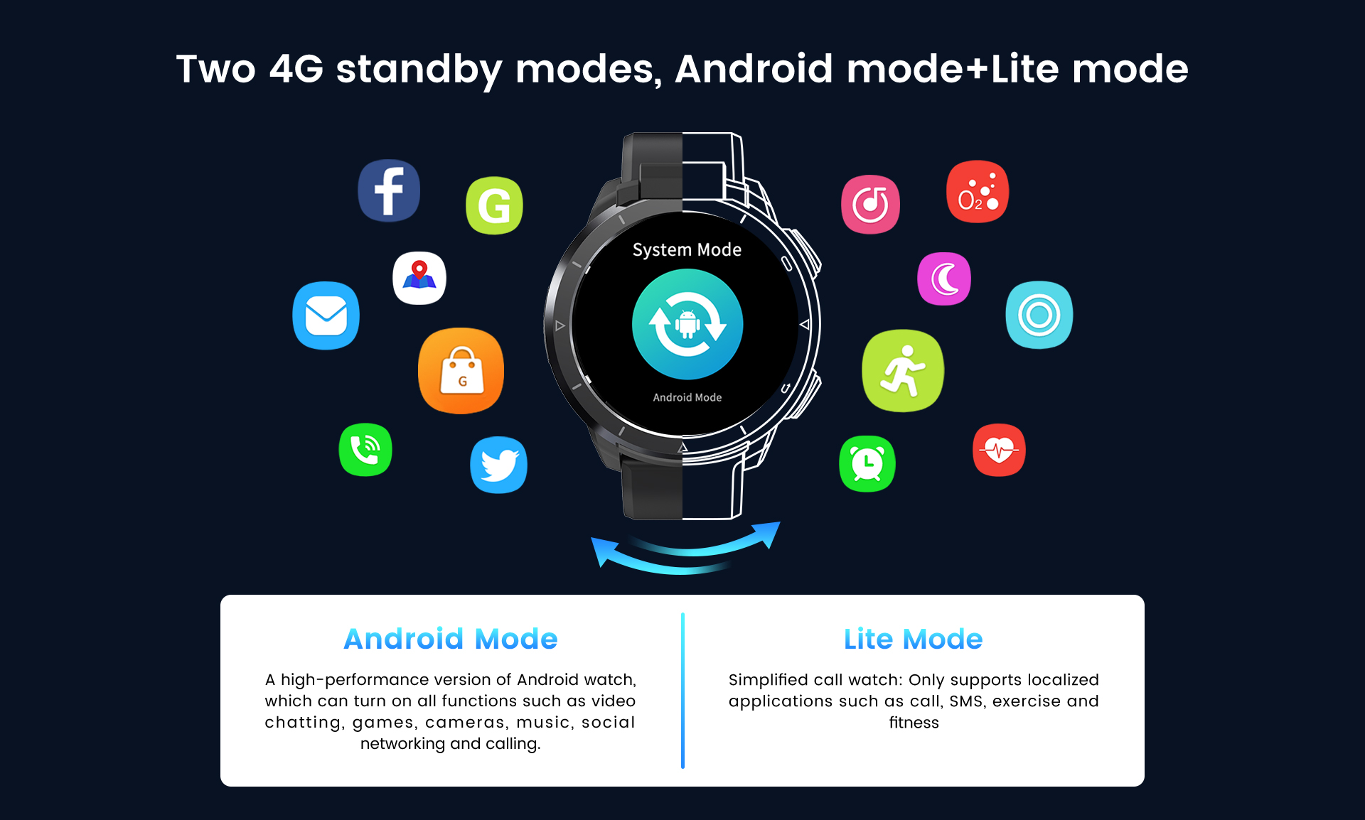Kospet Optimus 2 ships with Android Mode and Lite Mode. The Android Mode offers additional features including calls, video chatting, games, cameras, music, and social networking. Meanwhile, the Lite mode allows users to use the local applications on the watch such as SMS, calls, and various fitness modes.