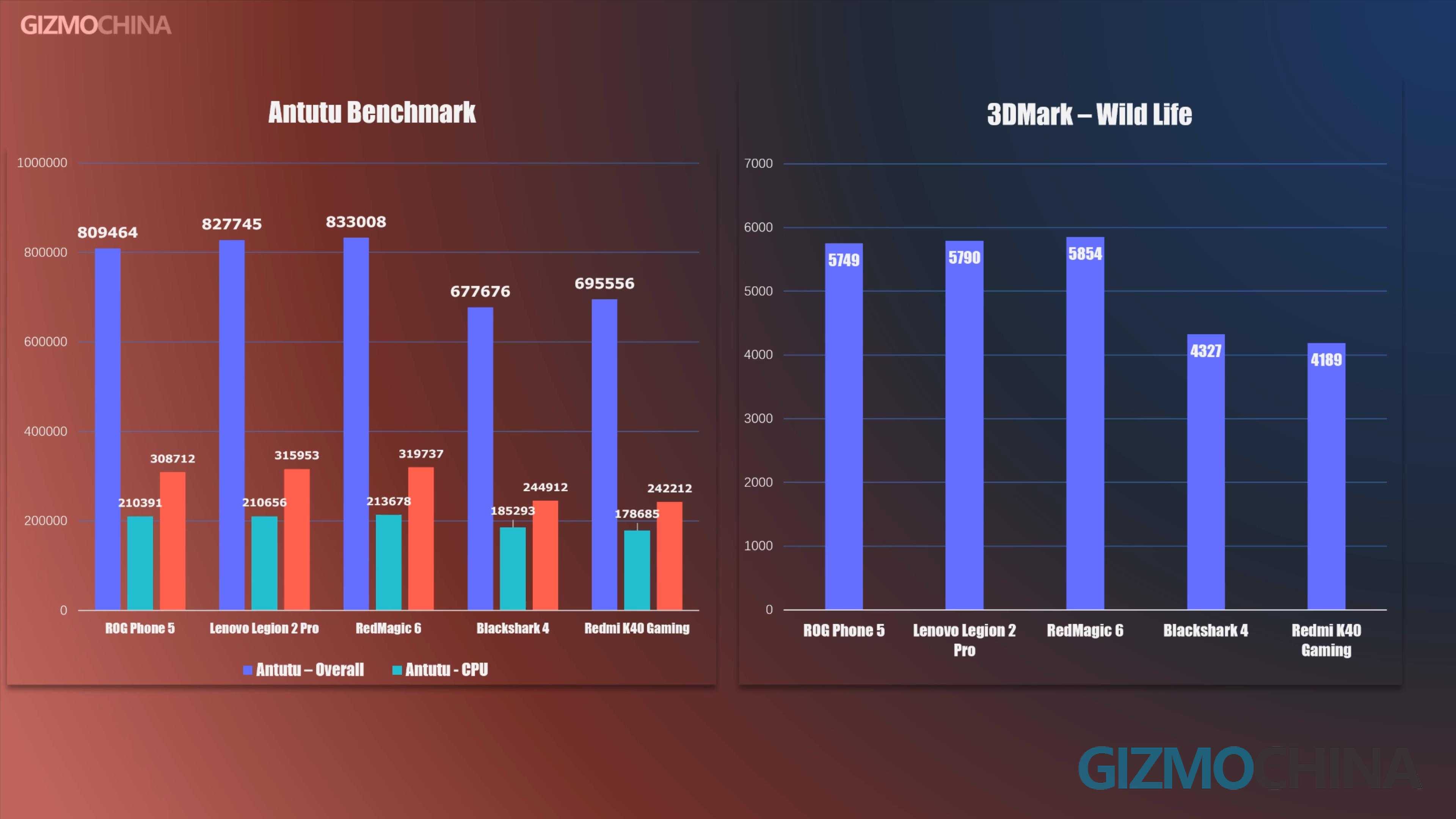 ROG 5 vs Legion 2 Pro vs Blackshark 4 vs Redmi K40 Gaming vs Redmagic 6: Best Performance