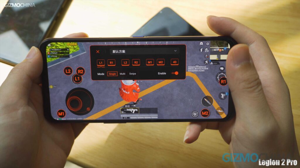 Well for the Legion 2 Pro, the situation is crazier. This monster phone just supports 2 press-sensing areas and 6 built-in extra-buttons for gaming operation, including 4 separated shoulder buttons and two slide buttons on the back. However, it’s not easy for gamers to have a comfortable grip while using all the buttons. And it’s really easy to register mistouches with these buttons, or sometimes you may even be confused by the less sensitive slide buttons at the back. So it’s hard to say whether this over implementation of buttons is a successful solution on a mobile product. But if you only activate the basic 2 shoulder buttons, the whole gaming operation would be much more delightful as they have fast response. And the grip feeling is the best among the five models due to the thoughtful position for placing your little fingers.