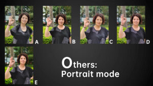 If you only look at face exposure and keying, B has the best performance in portrait mode.