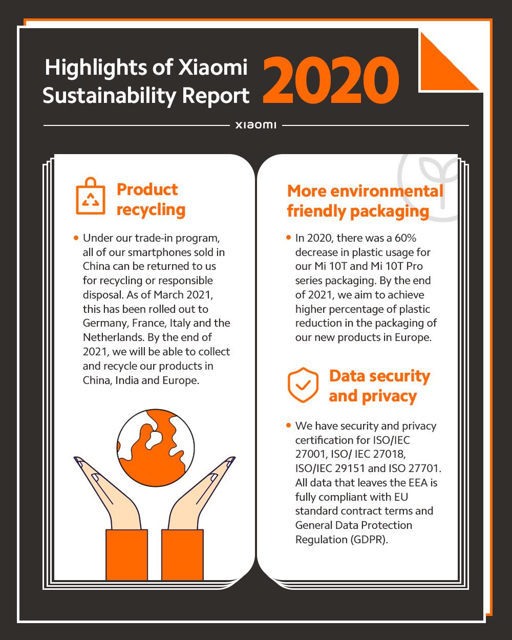 Xiaomi sees tremendous opportunities in its sustainability-oriented approach and will continue to pursue its operations along these lines.