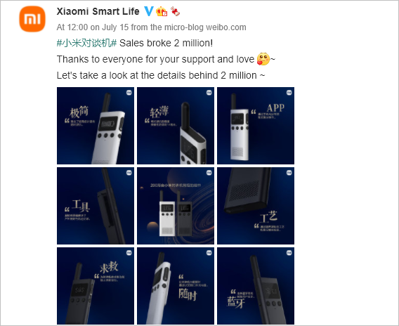 Xiaomi Smart Life recently announced that the sales of the Mi Walkie-Talkies have exceeded 2 million units. The company equally unveiled a new commemorative edition of the Mi Walkie-Talkie to mark this milestone.