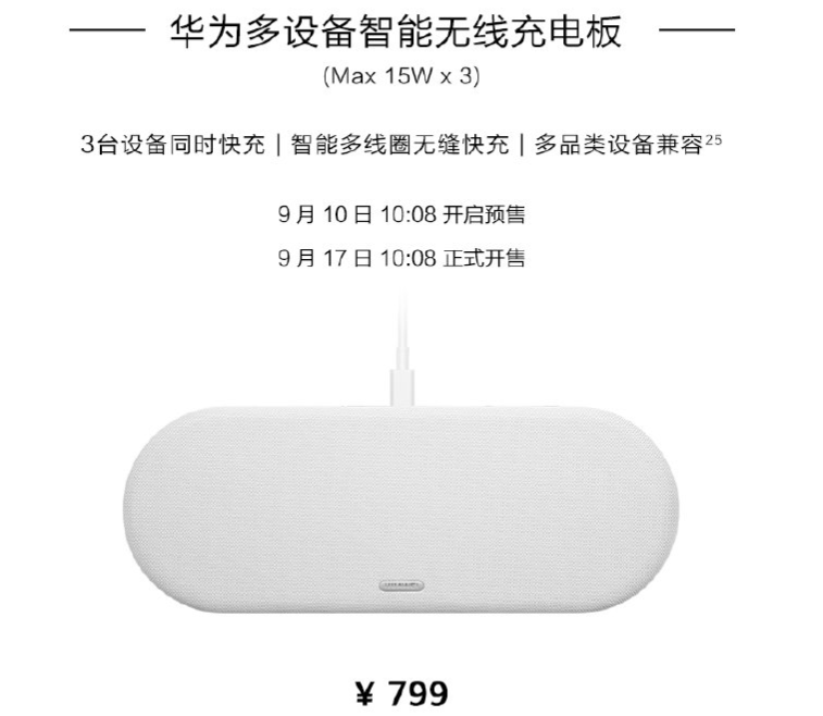 The new Huawei multi-device wireless charger outputs 15W power and could charge three devices simultaneously. The device also has smart functionality that can enable it to offer faster wired multiple charging solutions for several devices. Huawei has yet to put out greater details of the features of the device since its launch date is fixed for September.