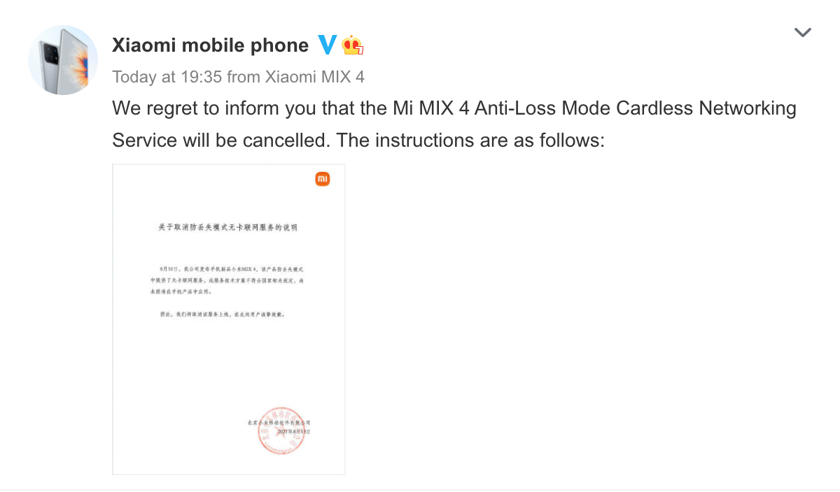 But did you know that the Mi Mix 4 had one more exciting feature, an anti-lost mode using a virtual SIM?