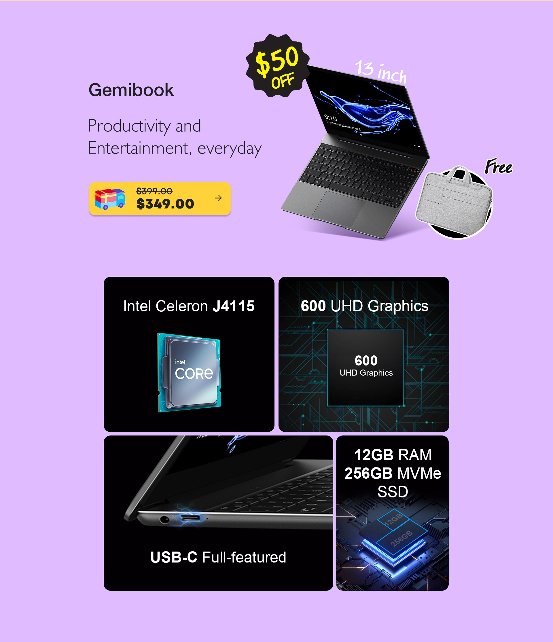 The all-metal body is currently on sale for $369 with a $50 discount. Chuwi GemiBook Pro weighs 3.3 pounds and bundles a 14-inch 2K display with a 3:2 aspect ratio. It houses an Intel Gemini lake refresh J4125 quad-core processor, 12gB RAM and a 256GB SSD. You can enjoy the fastest networking speeds with its WiFi 6 wireless network.