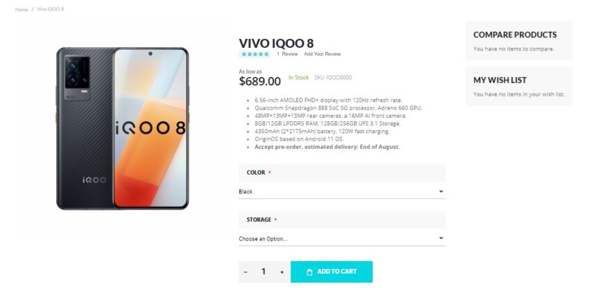 Particularly, iQOO 8 houses a 6.56-inch AMOLED display with a 1080 x 2376 pixels resolution and 120 Hz refresh rate. It is powered with Snapdragon 888 SoC coupled with an octa-core processor and Adreno 660 GPU. There’s a triple-rear camera featuring a 50MP primary sensor, a 13MP telephoto lens and a 13MP ultrawide sensor. A 4350 mAh battery is present with 120W fast charging support.