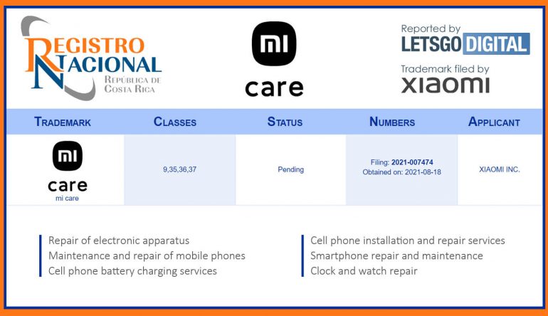 It is likely that the Xiaomi Mi Care service, which was launched in China in November 2020, will soon be rolled out to Europe and other international markets. A new trademark filing by the company in Costa Rica might indicate that Xiaomi is planning to establish these repair centers in Europe and the Americas.