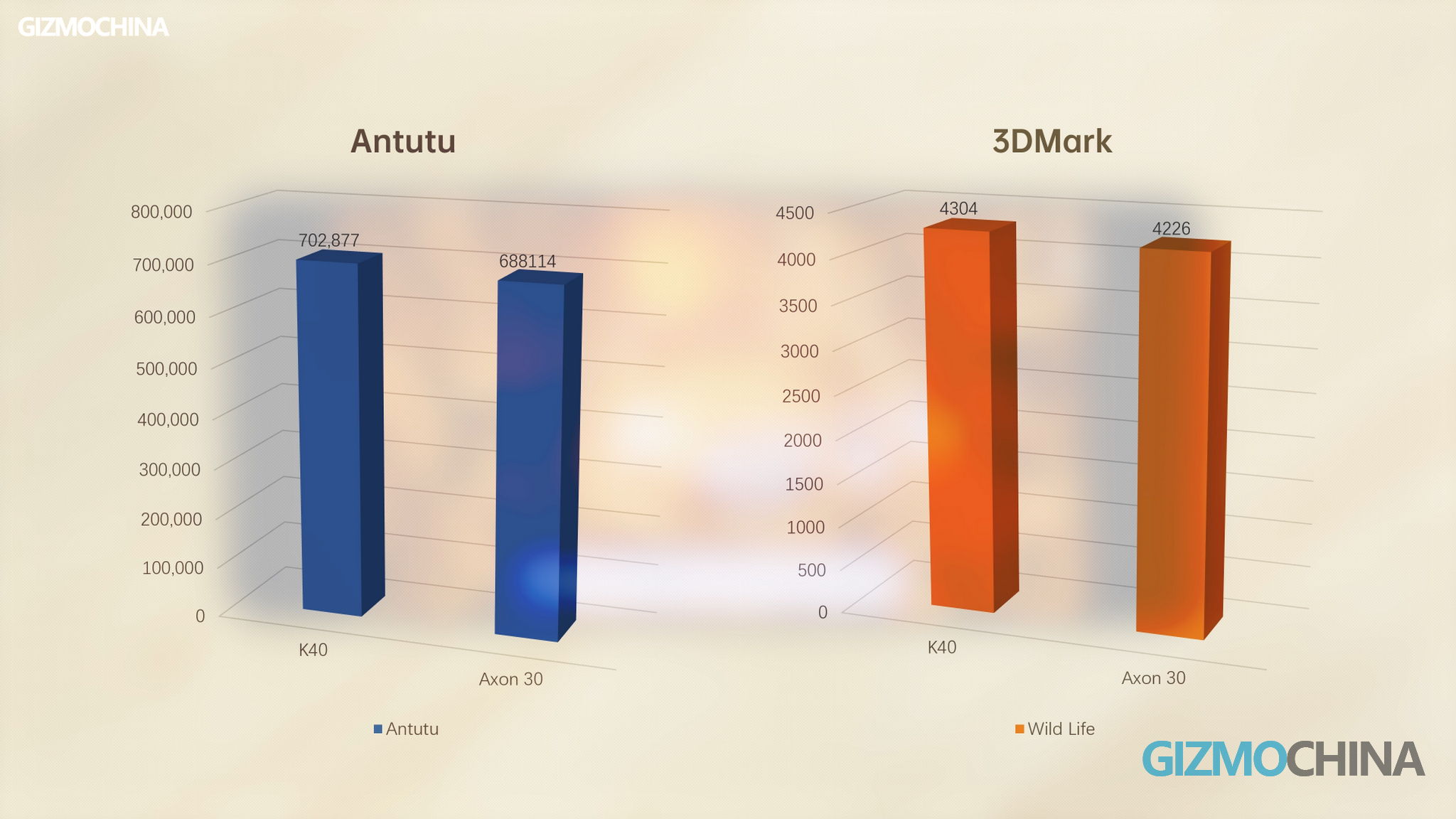 The Axon 30 comes with a charger in the box, and the phone’s maximum charging power is 65w without wireless charging. It charges to 22% in 10 minutes, 65% in half an hour, and it takes 50 minutes to 100%. Although the body only weighs 189g, it comes with a plastic back and features a 4200mAh battery capacity in exchange.