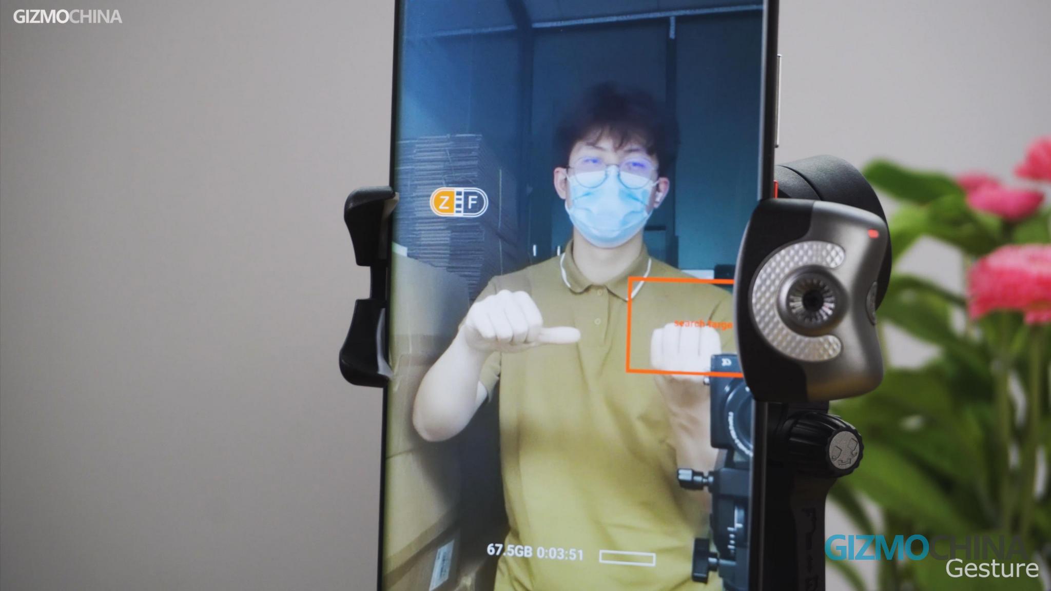Besides facing tracking, the iSteady V2 also supports independent simple gesture control, such as an OK gesture for shutter, a palm gesture for AI tracking, and thumb gestures for filming direction switch.