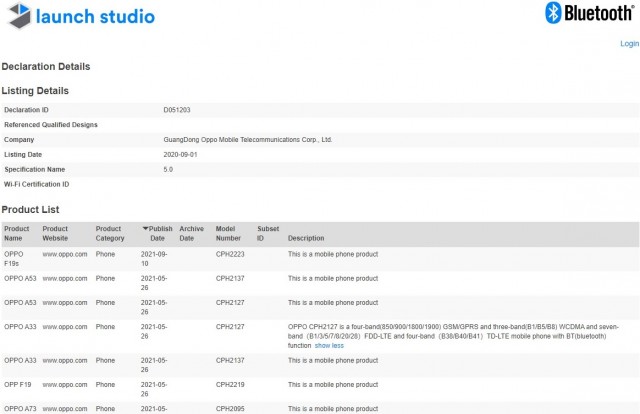 The Bluetooth SIG certification usually precedes the launch of devices, although it is not definitive and one cannot predict the length of time until the launch of the device. However, most products do get a quick lunch after their Bluetooth certification. There are only a few details that could be pieced from the Bluetooth certifying authority. The model number of the Oppo F19s is CPH2223. It will have Bluetooth 5.0 connectivity.