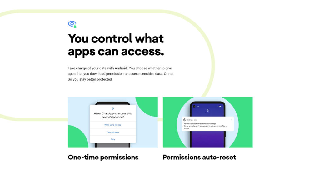 Data theft prevention and Privacy protection are two primary features of Android 11. The new version adds options such as One-Time permissions for apps. The users can grant access again if they require some particular service of the app. Moreover, there’s an ‘Auto-reset’ feature that allows the device to automatically eliminate permissions if you haven’t used the respective app for a long time.