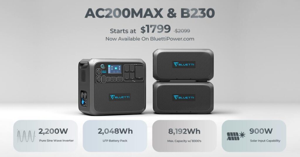 Apart from the Bluetti Ac300 launch, the stock for AC200 Max is now available. It is also on sale via the official website. However, the AC200 Max offers a built-in 2048Wh LFP battery pack and carries all-around capabilities. Moreover, it can be connected with B230 or B300 battery modules. However, you can get the Bluetti AC200 Max at the price of $1799.