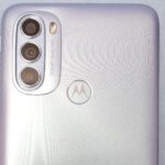 The bottom edge of the Moto G31 features a microphone, a USB-C port, and a speaker grille. A fingerprint scanner seems to be integrated with the Motorola logo found on its back panel. A triple camera unit seems to be present at the top-left corner of the phone’s back. A closer look at the camera reveals that it is equipped with a 50-megapixel primary camera.