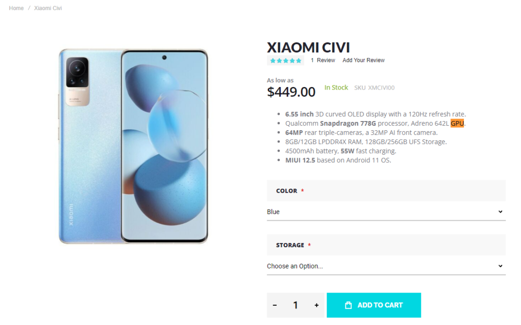 Featuring high-end specifications, the smartphone is available in 8GB RAM + 128GB, 8GB RAM + 256GB and 16GB RAM + 512GB internal storage options. It is a great opportunity to grab the Xiaomi Civi smartphone before the official launch in respective countries.