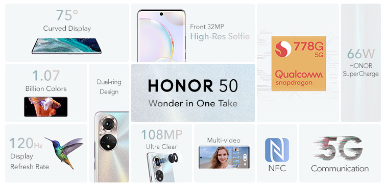 In terms of specifications, the Honor 50 sports a 6.57-inch FHD+ AMOLED screen which has support for a 120Hz refresh rate. The display comes with ultra-slim bezels on all sides giving it a high screen-to-body ratio. The premium mid-range smartphone is powered by a Qualcomm Snapdragon 778G SoC.