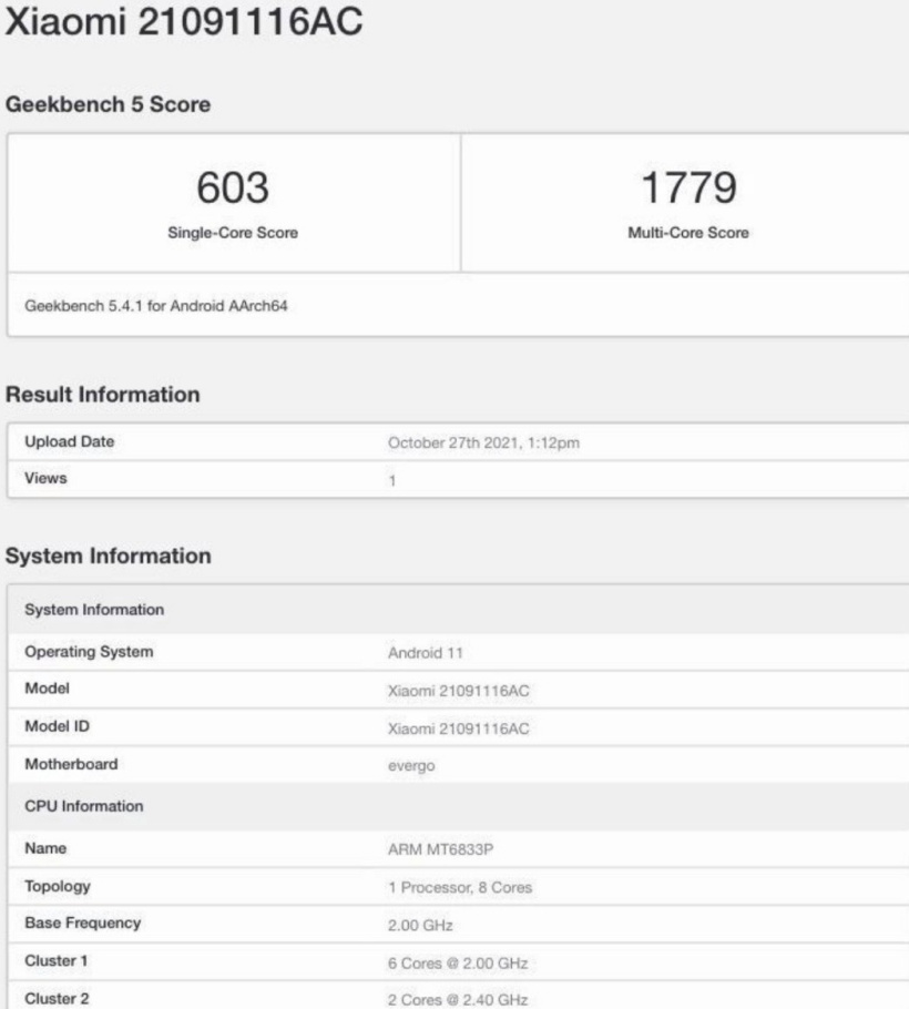 In a related development, the Redmi Note 11 bearing the same model number appeared on the database of benchmark website GeekBench. The listing confirms the presence of a Dimensity 810 chipset. The device scored 603 on the single-core test and 1779 on the multi-core test. It is also shown to run on Android 11 which will certainly have a touch of the latest MIUI version.