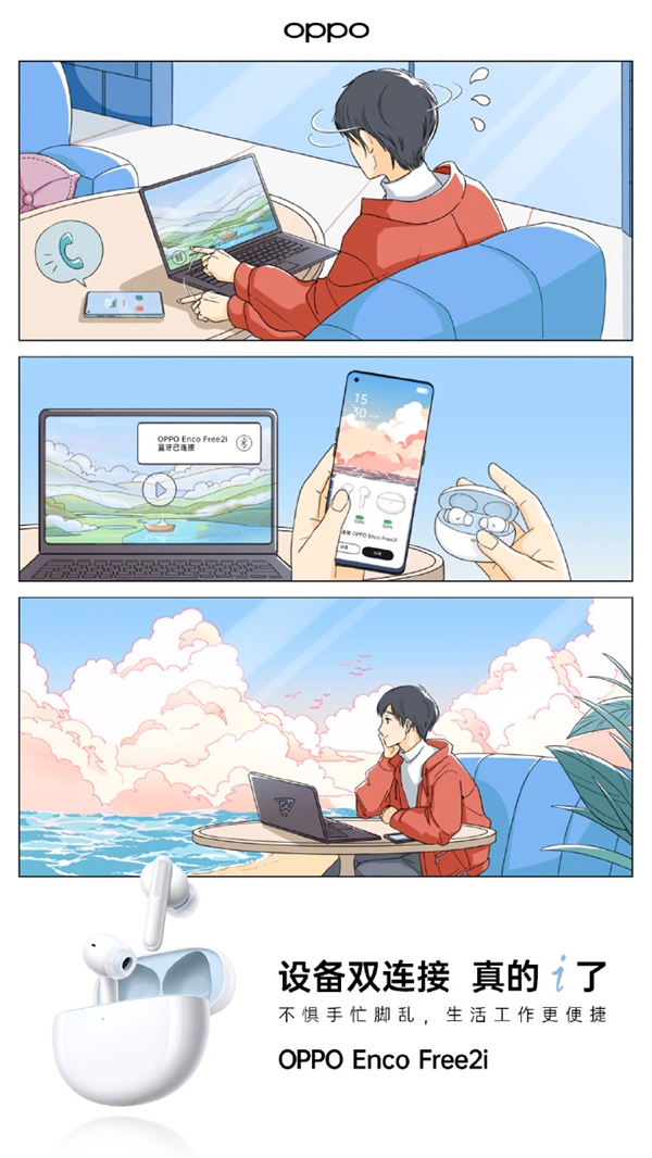 Judging from the official teaser posters, the OPPO Enco Free2i will adopt the same design style as its predecessor. However, the earplugs and earphone compartment are designed in blue. In terms of the features, the upcoming wireless earbuds will come with support for “device dual connection”, that is, the headset can be connected to two devices at the same time, and it is convenient to switch between the two devices.