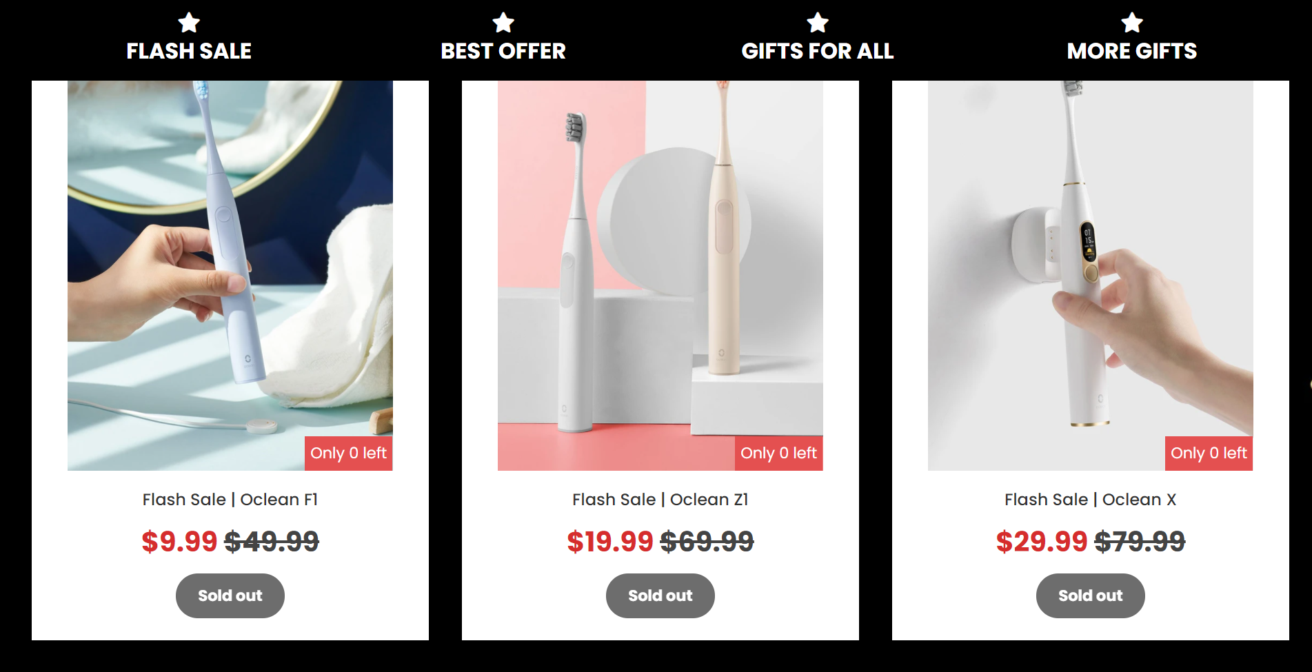 In the Super Flash Deal, the first 5 buyers of Oclean F1, Z1, and X till November 29 will get up to 80% discount. Particularly, you can get Oclean F1 for $9.99, Oclean Z1 for $19.99, and Oclean X for $29.99.