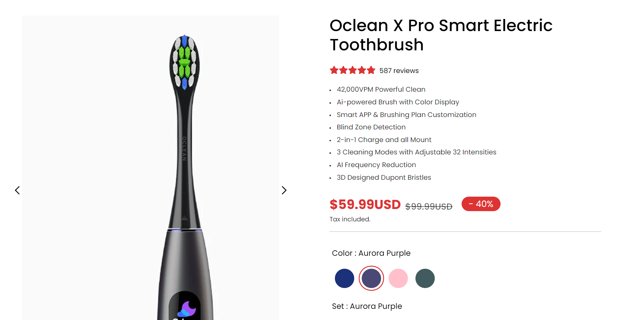 A powerful electric toothbrush having a 42,000VPM motor and a colorful display is available with a discount of 35%. The smart toothbrush offers three different cleaning modes with 32 intensity levels. It harnesses AI functions for effective tooth cleaning. You can grab it for the price of $59.99.