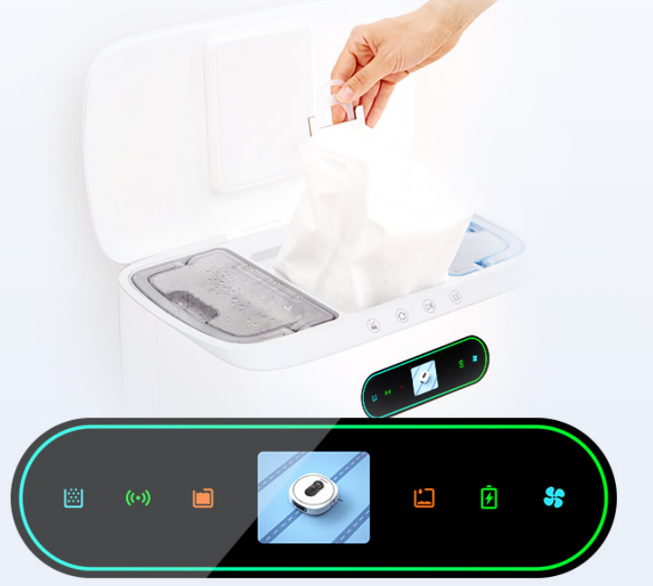 The LED display also indicates if Waster Water Tank is filled and even shows Mop Drying light when on.