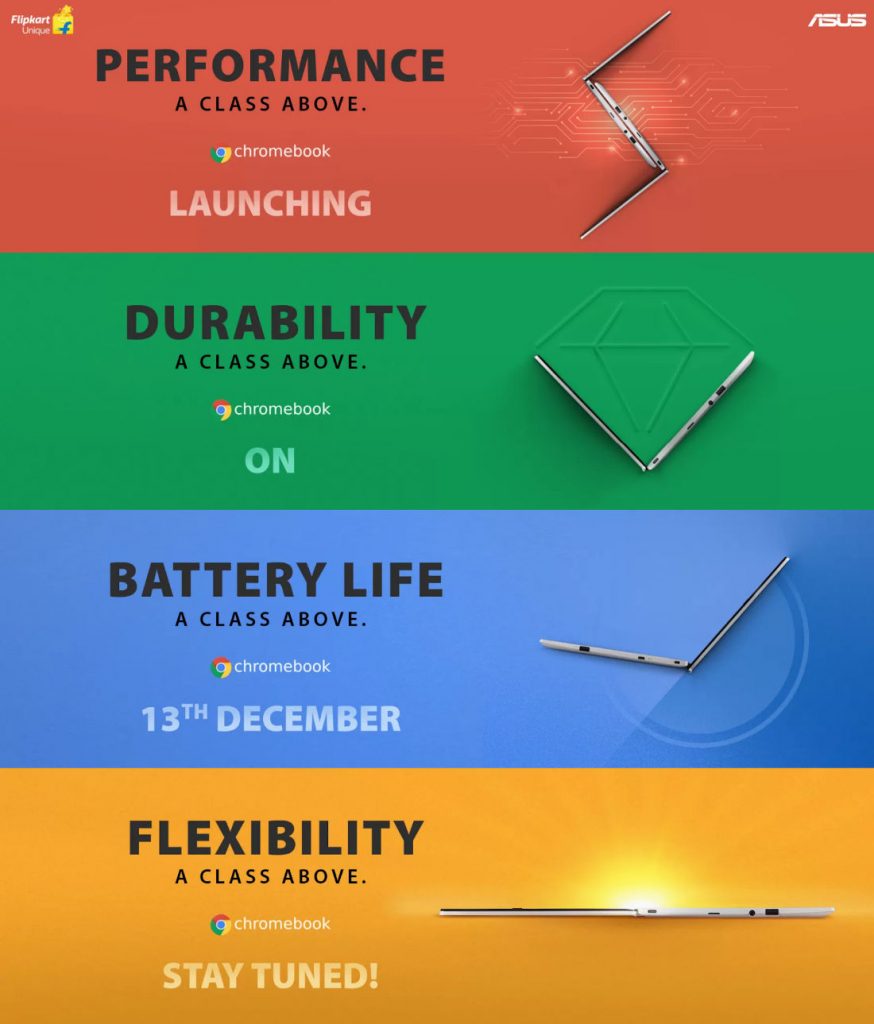 PC maker ASUS has confirmed a December 13 date for the unveiling event of its latest device in the ASUS Chromebook series in India. The new ASUS Chromebook features military-grade durability, although the actual model number is still under wraps. This comes after the release in July 2021 by ASUS, of four Chromebook models in India, namely the C214, C223, C423, and C523. The new ASUS Chromebook will be available via Flipkart in India after the December 13 launch event.