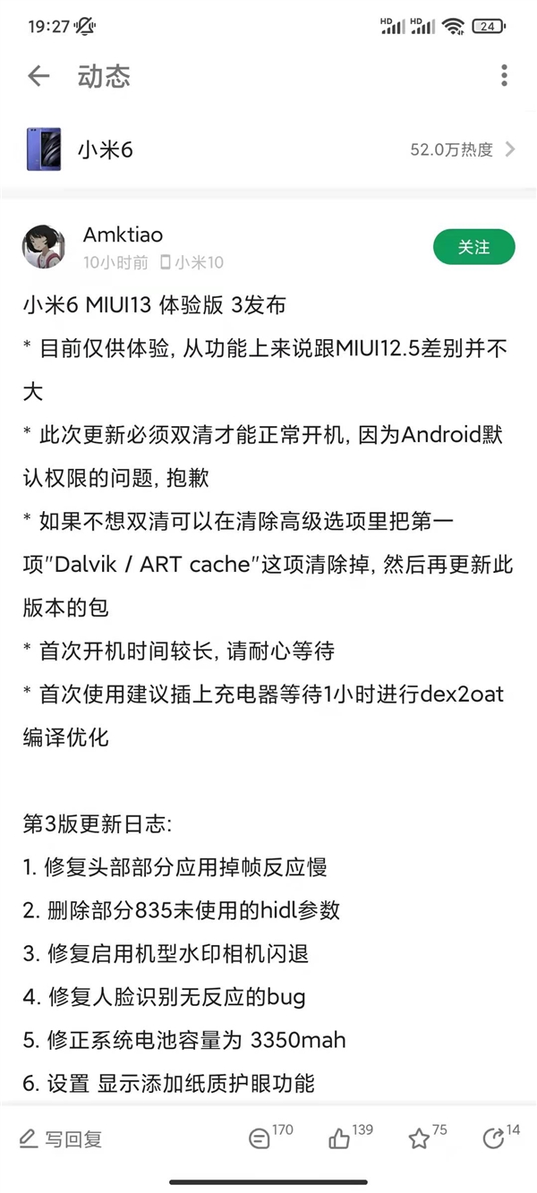 At present, the Mi 6 MIUI 13 experience version created by @Amktiao has been updated to the third version, which fixes many bugs such as frame drop, earpiece, fingerprint recognition, and so on. Thus, if you plan to try this out, you have some level of guarantee that it isn’t infested with bugs.